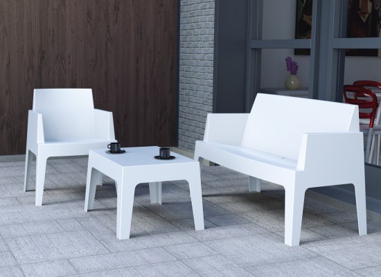 (composé d’un canapé, une chaise et une table de jardin en polypropylène opaque blanc, ultra-résistant été comme hiver !)