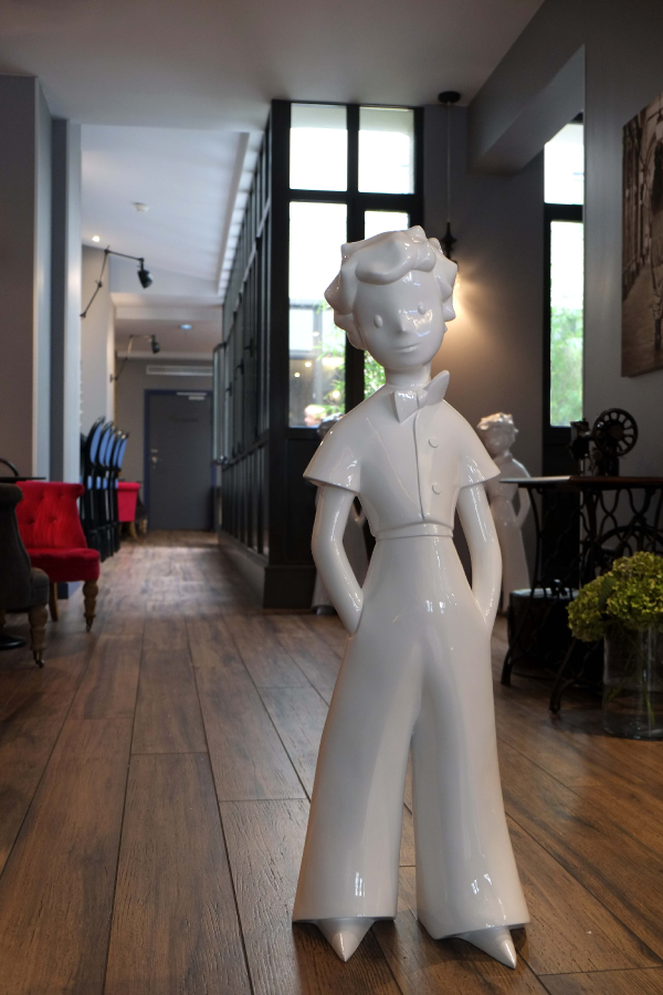 Avec sa bouille enfantine et son grand pantalon bouffant, ce Petit Prince version 2014 en résine et fibre de verre laquée, nous fait retrouver notre âme d’enfance…Il décorera entrée, salon ou chambre avec classe et une pointe d’originalité !